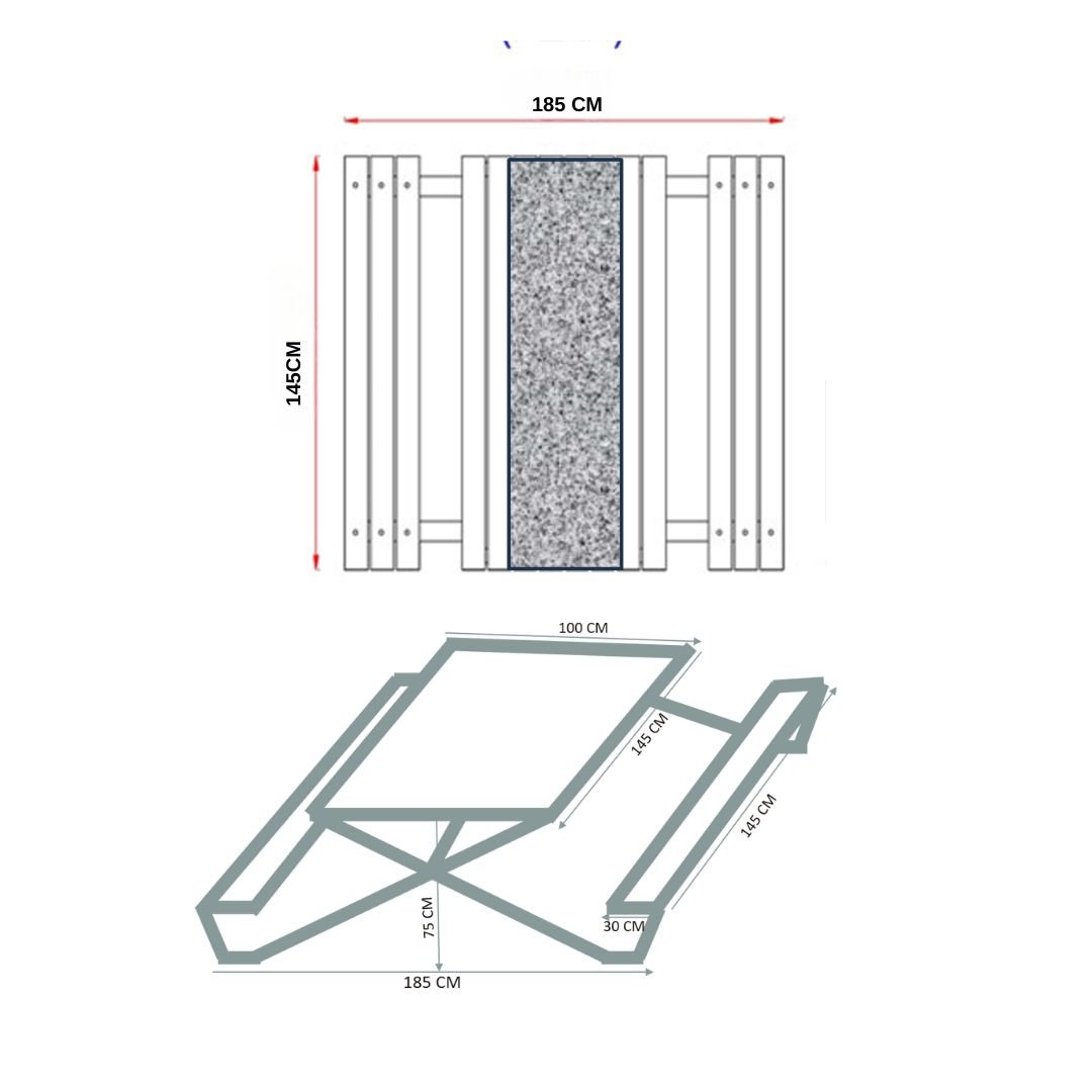 - Oturma alanında 10x5cm ebatlarında üç adet ahşaptan oluşan 30cm lik oturma alanı olacaktır. Bankın üstünde ahşap kaidelerin ortasında 40cmx145cm olmak üzere mermer taş konularak yapılacaktır.